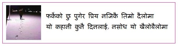 indisguise bro, kura bujherai gareko ho.. sitara is sharing a poem, let's appreciate that nice gesture on her part. why bring all those unresolved businesses from other threads here bhanera po bhaneko maile. la sitara ji, padhe yaha ko kabita. ramro naramro thaha chaina. padhe, tyatti bujhina, because I am not trained to understand and analyze poems. Baru tyo pahila ko jasto katha-anecdotes pani lekhne ki, hami jasto Kabita nabujhne pathak ko lagi?