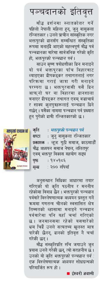 Actually, I revived this thread thinking to incorporate recent literature in context of newars. Samir Jee, I don't want to sound like that I'm trying to defend. But I thought of adding few lines. I don't know when caste system got roots in Newar society, but it exists and it is bad. I won't make a strong conclusion as saying 'the rules are strict ones in comparision to other nepali community' unless we've data or know about other community. In fact, we don't bother to know much about other communities. That conclusion is baseless unless we've knowledge of each and every nepali community. The word 'arranged marriage' itself means finding the best compatible match. So obviously one'd look for caste and religion and other stuffs. But I've seen many marriages among hindu and buddhist newars. It is not that much of a big deal. I totally disagree that if conservatives consider it as bad as marrying outside newars because the language is another most important thing, and you'll find many hindu idols inside buddhist newar's houses. Most of buddhist newars are aware of hindu customs and texts like ramayana, mahabharat, and others. It is another story that hindu newars know much less than what buddhist newars know of hinduism. Your last statement about pode, chyames still hold true in many houses.