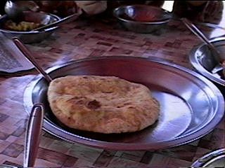 बल्ल देखेँ, उता बाँटामा चईनी गहुँका सुख्खा रोटा हुन् कि पुरी हुन् कि कस्ता रोटा हैचन् कुन्नि,