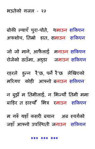 कबिता र गजल् को त बादि नै लाग्यो नि,हन के सारो फुर्ने हो,कहा बाता आउच हो तेस्स्तो लेक्न ,सिकि पौ न प्रभु हरु??