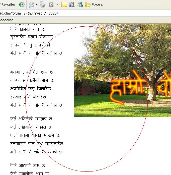 हत्तेरिका कसरि भयो तेस्तो अरु को कम्पुटर् मा चै राम्रो आउने मेरो त कर्मै हो कि उस्तो पुचर् त छदै थ्यो स्क्रीन् पनि बाङिने :p na baata........