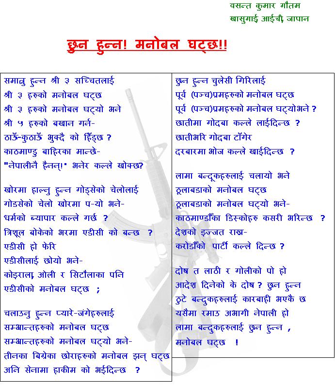 लौ गाम्ले हरु केहि दिन गयल भये पनि फेरि हाजिर् भयेको छु । के खालि हात आउनु भनेर लोक गित पनि बोकेर आएको छु केरे रमाइलो अर्नुस्। shree 5 मेरो दाइ हो म कसैले मेरो दाइ लाइ नराम्रो भन्यो भने मैले जानेको छु है , जिरे खुर्सानि धेरै पिरो हुन्छ। :P:D:)