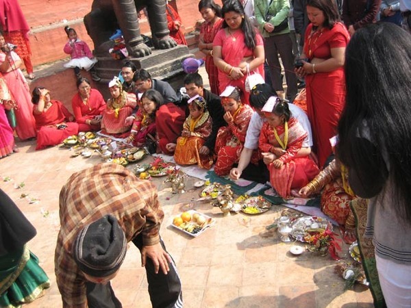 हो, ठुली, हो चित्रे, हो रिट्ठे। इहि अर्थात बेल बिबाहको तसबिर हो त्यो। नेवार समुदायकी कन्याहरुको जीवनमा ३ पल्ट बिहे हुने हुन्छ। सबै भन्दा पहिला बेल संग बेलबिबाह, त्यस पछि बाह्रा अर्थात गुफा राख्दा सूर्य संग र अन्तम मनपरेको ह्यान्सी संग। यस उसले, कोइ पनि कन्या बुढी कन्या नहुने अचुक चलन रै छ।