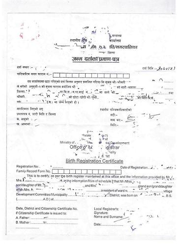 I have attached a copy of my birth certificate that was provided to me from my VDC. Thanks.