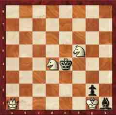 typo in the first post......... Danah, based on your assumption K d4 xP e3 is valid. hence no check mate he he he no offense but why black king move from c4 to d4. white pawn on e3. its guarding d4 and f4 unless i am getting this board reversed. but right hand side white square means white pawn moves from 2 to 8 .... here is the modified. i.e actual solution. 1. B g8 XQd5 2. P c6 XBd5 1. Q e8 b5 (CHECK MATE )
