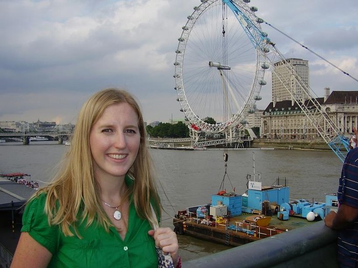 Kool Kiwi lady Katherine, my perfect London Guide giving natural pose near London Eye.