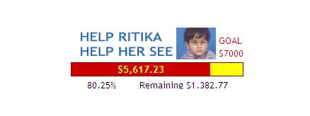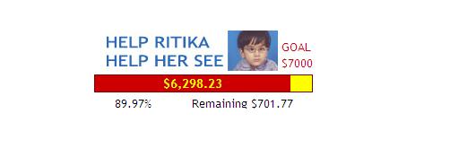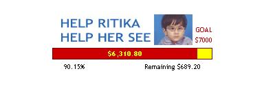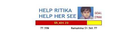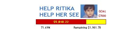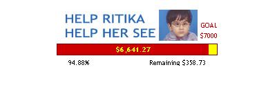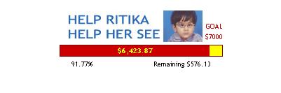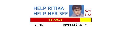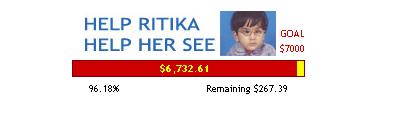 The golden bar is almost filled by the red bar. It seems now Ritika has full of hope to see this beautiful world. I would like to thank every person who made contribution from their side to change "Ritika" into "Jyotika". Update March 06, 2007