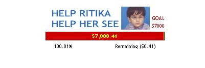 WOW!! It si good to know that Ritika fund is done now. Great job everyone who donate money for Ritika. Keep up your good job.