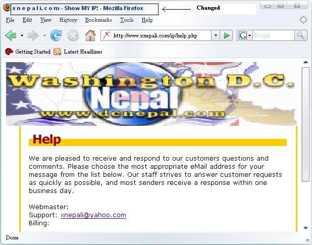 Prakash ji, You can clearly see in the screenshot of current page where even the title of page is changed to "XNepali.com-Show My IP!". If you look in google cache, it was "DCNepal.com-Show My IP!". And nobody is that moron that he/she uses somebody else's email address for correspondence with webmaster and billing. Why the address was deleted over the night? Do not try to hearten some stupid people in vain.