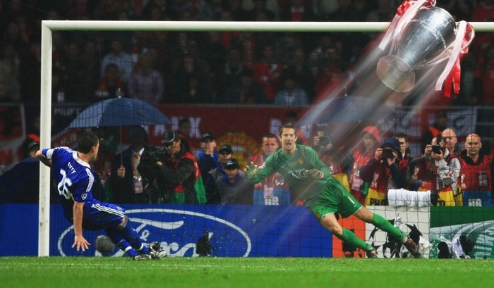 i thought terry;s shot went in... i couldnt believe it .. van der sar dived wrong , terry shot looked like perfect goal., and then it bounces back out... i almost went pagal when i saw that.... i couldnt even watch the award ceremony after that, i shut off the tv.
