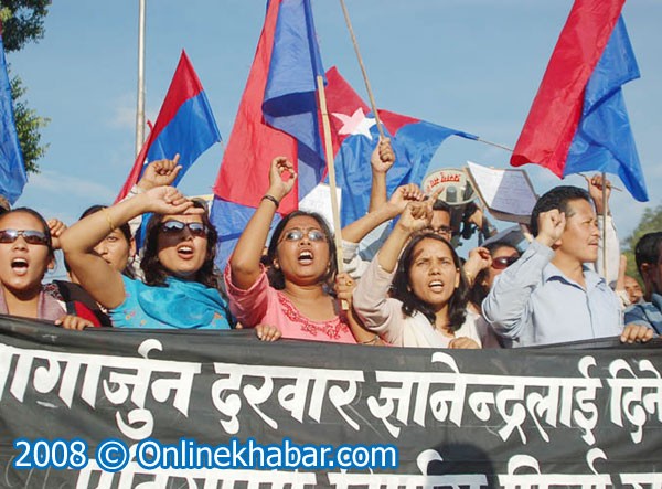 Regarding the issue of 'Nagardjuna durbar', I think, we're still not ready to be republic. Gyane did lots of mistakes, but he should be praised for being calm while he was being ousted. Maoists including Prachanda, Badal, and their other leaders have clearly stated that their main aim is to get MAOTANTRA (the ones like in Cambodia, where educated people and anyone opposing them will be slaughtered); Prachanda have already warned Kantipur not to write against them. Maoists are sucking the public funds including the ones allocated to benefit for the community (Parsa saga over the misuse of lake and temple fund by maoists). So, giving one durbar to king for their lifetime should not be a big deal.