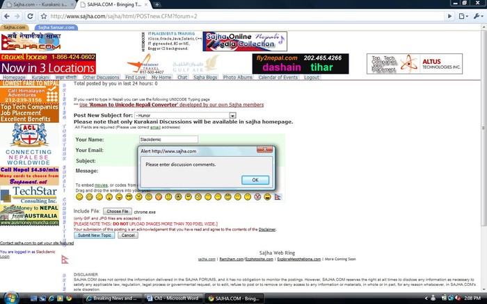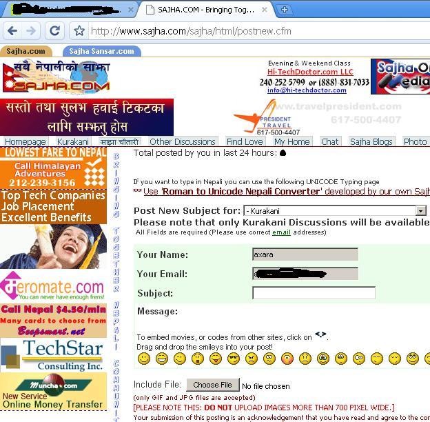 Posting a message on Sajha with Chrome browser sure doesn't work on mine either. I hope it is a minor glitch that can be fixed.