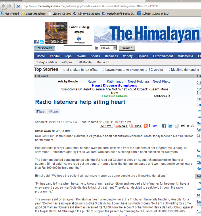 I listent to radio on shoutcast.com. Great programs in Nepali and English. Radio is still a great source of news.